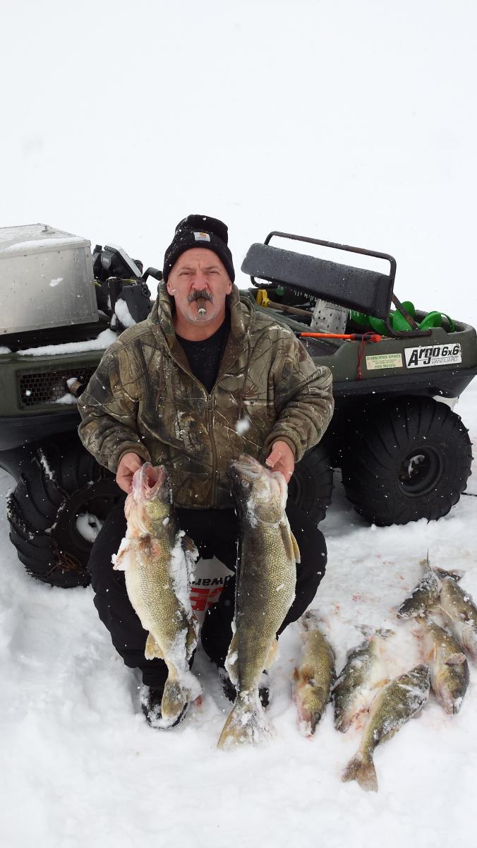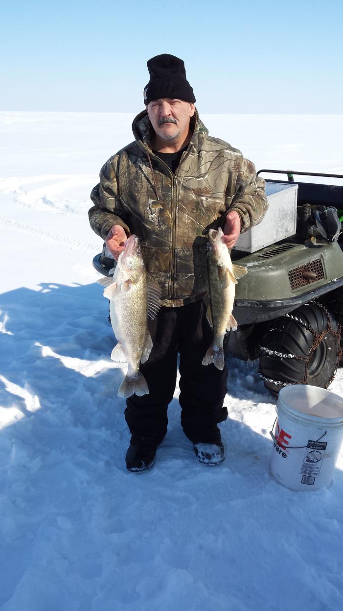 Fished from March 1st through March 6th out of Port Clinton and on Sunday we caught our limit of 8 walleye using orange 1/3 oz silver / orange gold little cleo's in 26ft. Monday we caught 7 walleye in the same location about two miles away from west sister island just to the left one mile. Tuesday we moved in to 24ft and used silver little cleo's and found the afternoon bite and caught 4 walleye. Wedsday we moved deep into 29ft caught 2 waleye and 2 perch on silver little cleo. Thursday morning we fished shallow 19ft and didn't catch anything so we moved to the location where we caught the afternoon bite in 24ft and caught a couple on the gold orange and gold silver little cleo's. Friday we fished at the 26ft location in the morning then moved to the 24ft location for the afternoon bite and caught some fish at both locations using the gold orange and gold silver little cleo's. All together two of us caught 28 walleye with the bigist at 12lb.