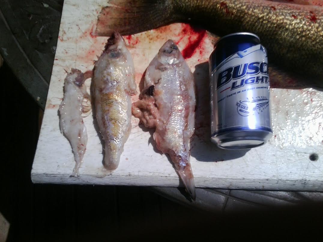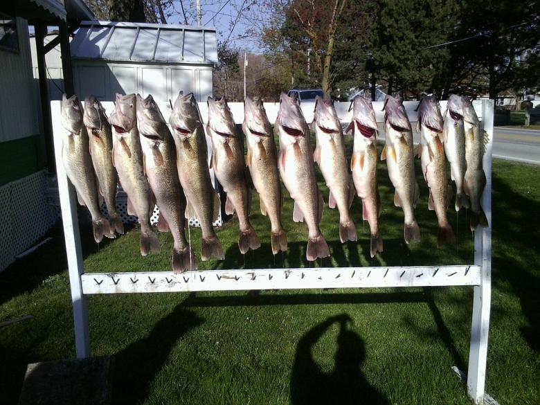 slow pick sat started north of kellys and ended day mouse island reef area reef runners 60 back took most fish anything bright yellow sunday pulled 6 only fished till 10:30 same area but 40 back took pic of the perch that was pulled out of the first 2 I cleaned first and the next 2 had big perch in them also 2 should of waited till all done to take pic found 6 perch that size total in the 6 fish we cleaned