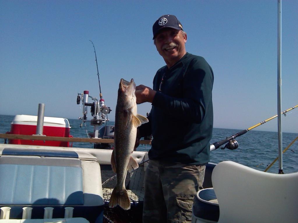 The lake had that great chop, 1 to 2 footers so we just drifted spinners. We would start our drift near stony point. Motor out into 21 ft of water and drift in to 18. We didnt seem to mark alot, but im still learning this fish graft. The colors didnt seem to matter too much but blueberry muffin took the most fish. We used both 1 and 2 oz bottom bouncers, didnt seem to matter. There never seemed to be a tight school, but we would get another fish about every 20 to 30 minutes. Which was really nice, having the time to get her out of the net, into the cooler and put the net back. Perfect day!!!