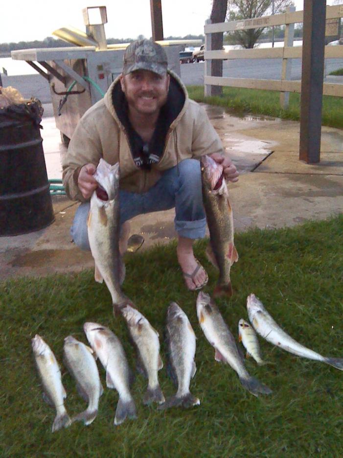 Friday was another story. We caught 2 walleye all day. 1 monster female that was loaded with eggs and 1 much smaller fish at the end of the day. I thought for sure that they were all spawned out by now but you should have seen the belly on her. HUGE. My dad wanted to try and eat some of the silver bass so we were keeping them for alot of the day. As the day progressed, I was dumping them back over board because I knew we already had a mess of them to clean. And by the end of the day we were joking about thumping them on the head and tossing them back in. Which we never did. But there were just so many of them. Bet we caught over 80 stupid silver bass. You would get a fresh crawler on, lower your line in, set the pole down, and thump thump. MAN I know what that is.