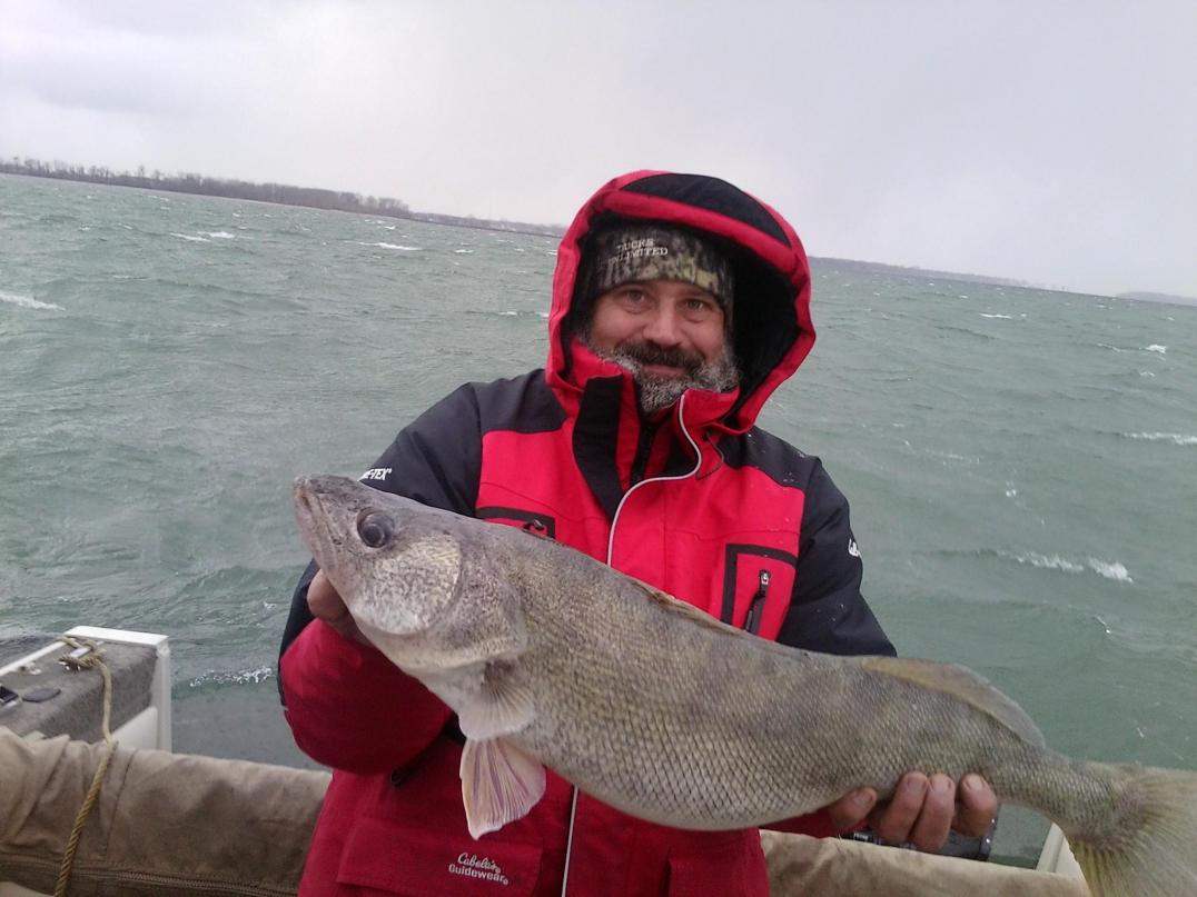 left work at 10;30 and headed to lake 2 man limit husky jerks 47 to 50 back wind blowing hard did not even use trolling motor just drifted pulling boards and had to put a sock out to stay at 1.4 to 2.0 same area previous post