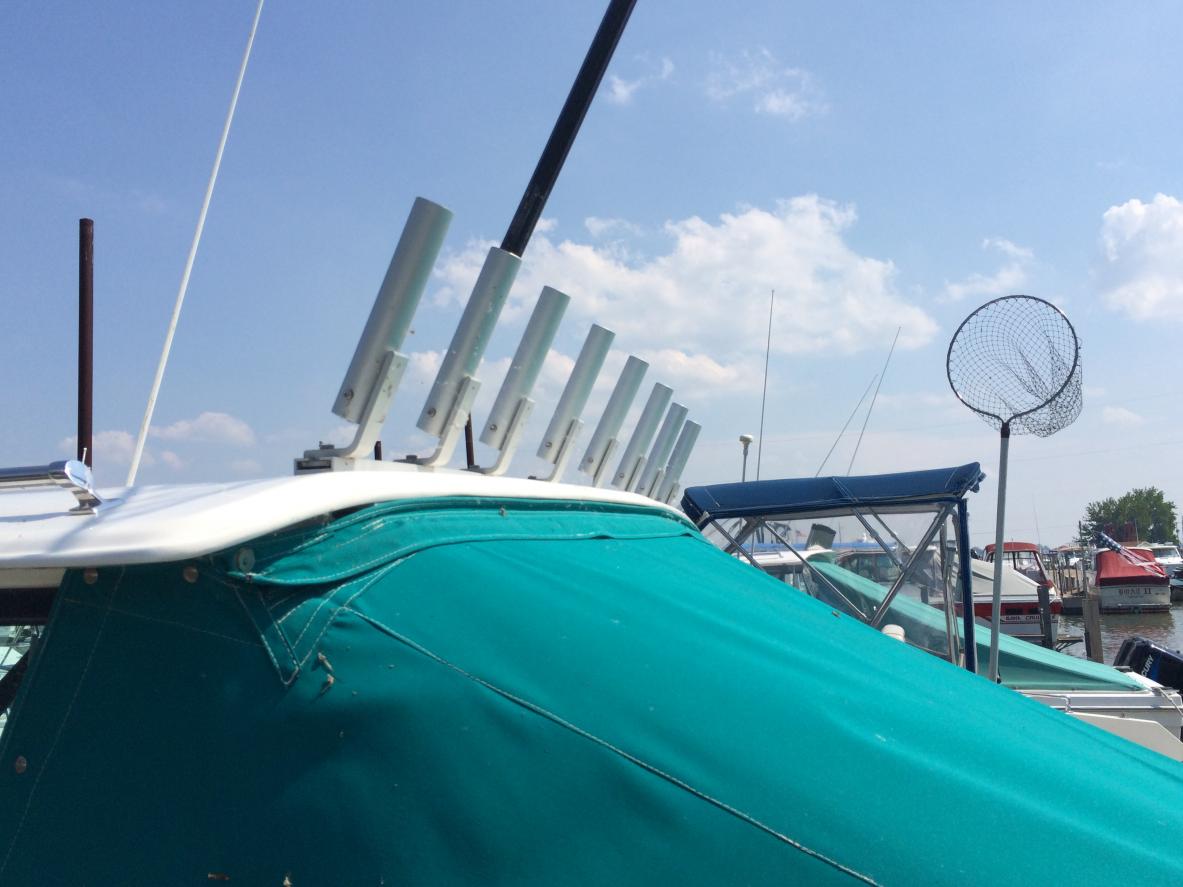 Would anyone happened to know what brand rod holder / launcher this might be. I would like to add a few more and there is no manufacturer stamp. Each rod holder slides in a track attached to the hard top.