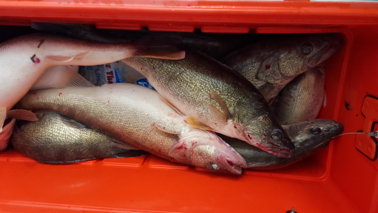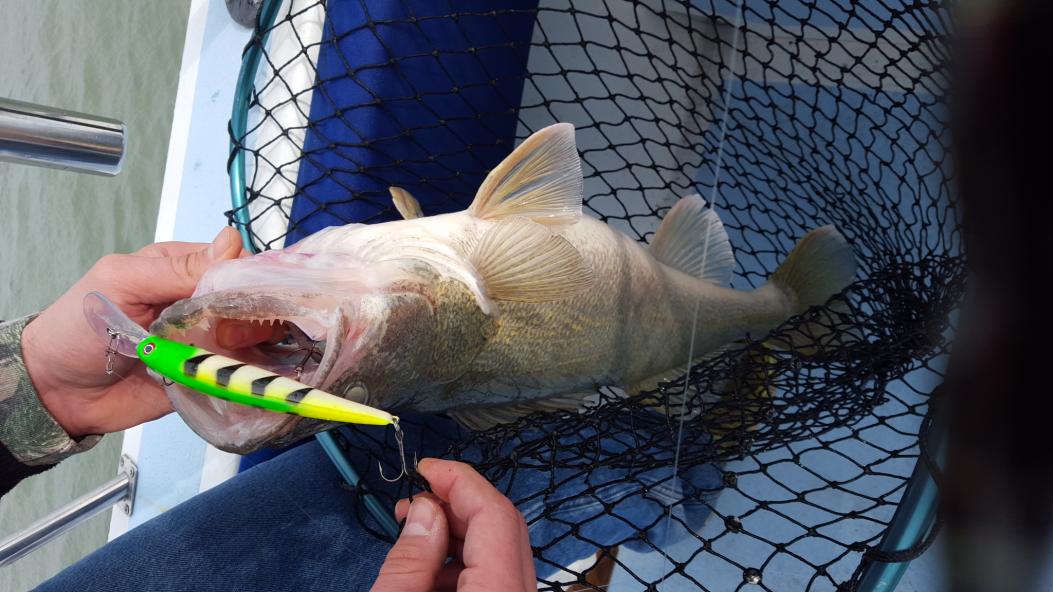 I fished around E can trolling deep diving bandits back 63 to 67 feet. Best speed was 1.6 mph. Best color was rc crush (custom color from djs customeyed lures). It took us about three hours to get our limit. The water clarity was about two foot.