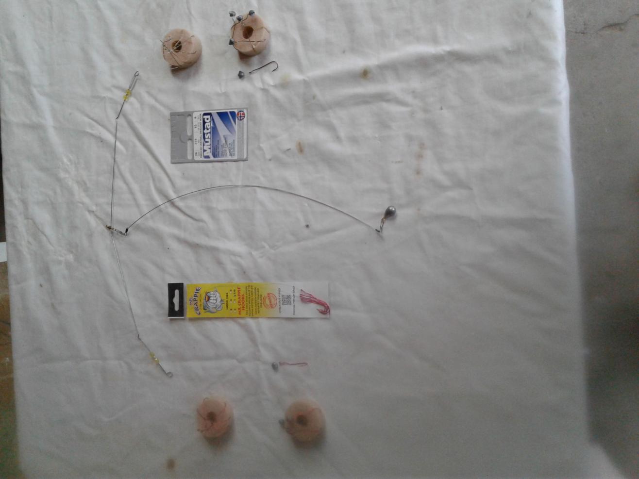 I like the eagle claw #2's, with white and blue fish skin. Some guys like smaller hooks. When you get on good perch they bite without bait a lot, or sometimes I just bait one hook and they hit the others with fish skin. They come with 5 hooks, I cut 2 off and move snap down and use the leftover 2 hooks for spreader hooks. Ive gotten them at FISHUSA, amazon, and other online vendors.