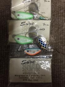 I was going through my tackle and came across a bunch of old weight forward's that I have and remembered this old thread from last summer. I attached a couple of pictures of Sure Shad lures from 2 different suppliers. Veselka from Maumee and Wagner from Defiance. I don' know if these are different owners of the same brand but thought I would put it out there for people to comment on.