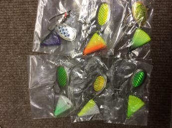 what about lei j,s i think thats how you spell them just bought around 40 cards of them new old stock the fish head, Erie dearies,parish peas, all colors. and few others. friend of mine bought them out years ago probally got 500 or so. and was able to get 5 cards of new Erie dearies we pour the head for him he makes them he does a really good job even sends them out to be gold plated so the price of that goes by whatever the price of gold is. going to get some nuggets for the wall but what size we have 5/8 and 3/4 i also think this will be a great year for the old lures