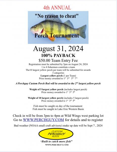 PERCH TOURNAMENT registration deadline is August 6, 5pm