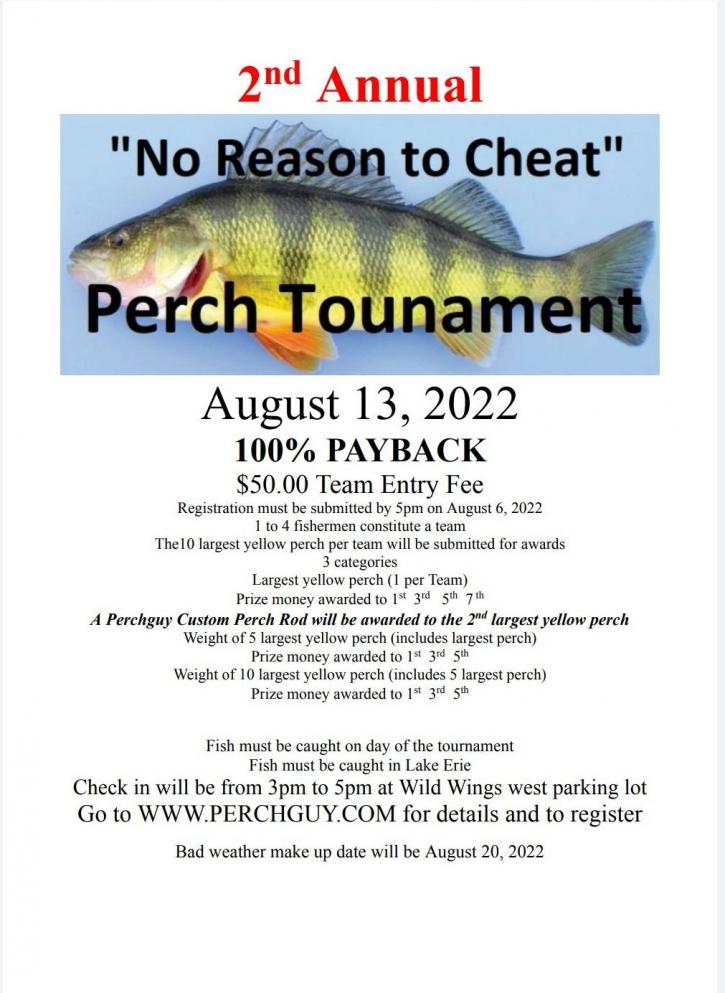 Thanks to all the participants and sponsors of the 2022 No reason to cheat Perch Tournament. Results are posted on the Tournament web site.