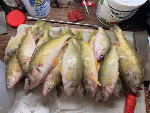 Re: Water Dogs yellow gold perch report 7-21-2024 EAST OF H CAN 100 YARDS (gut pile)