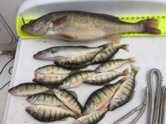 H can today, 8 yellow perch, 2 very small walleye and one was a milking (under 12 inches), one very nice white perch.