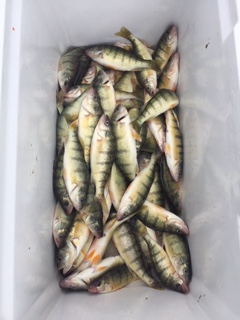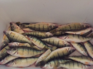 fishing from 9am to 2pm, 3 of us today, 61 nice yellow perch and 23 pounds at the cleaners, very nice and no throwbacks , wow .