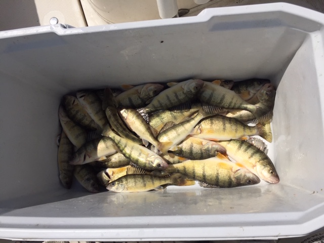 Caught 30 yellow perch, 11 pounds at the cleaners.